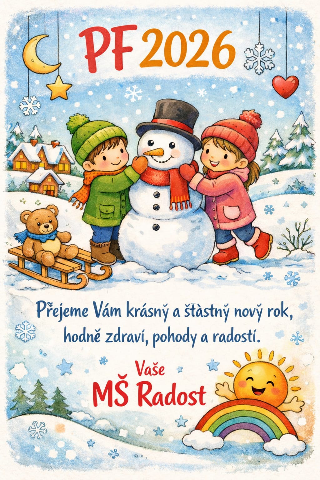 Šťastné Vánoce a úspěšný rok 2026 přeje ředitelka a kolektiv MŠ Radost Bystřice pod Hostýnem.