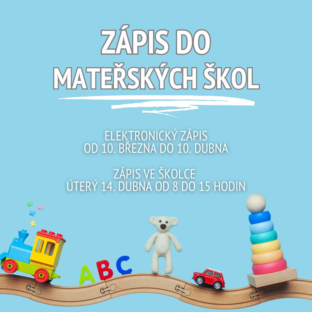 • Osobní zápis v MŠ: úterý 14. dubna 2026 (8:00 – 15:00)