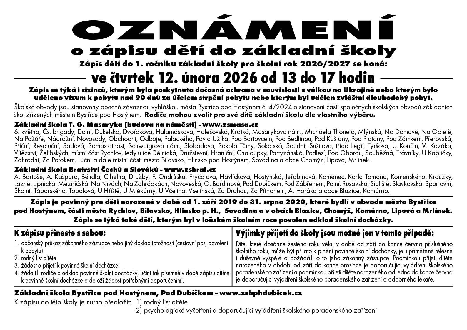 zápis do ZŠ proběhne letos poprvé i elektronicky. Stránka pro el. zápis bude spuštěna až 19.01.2026