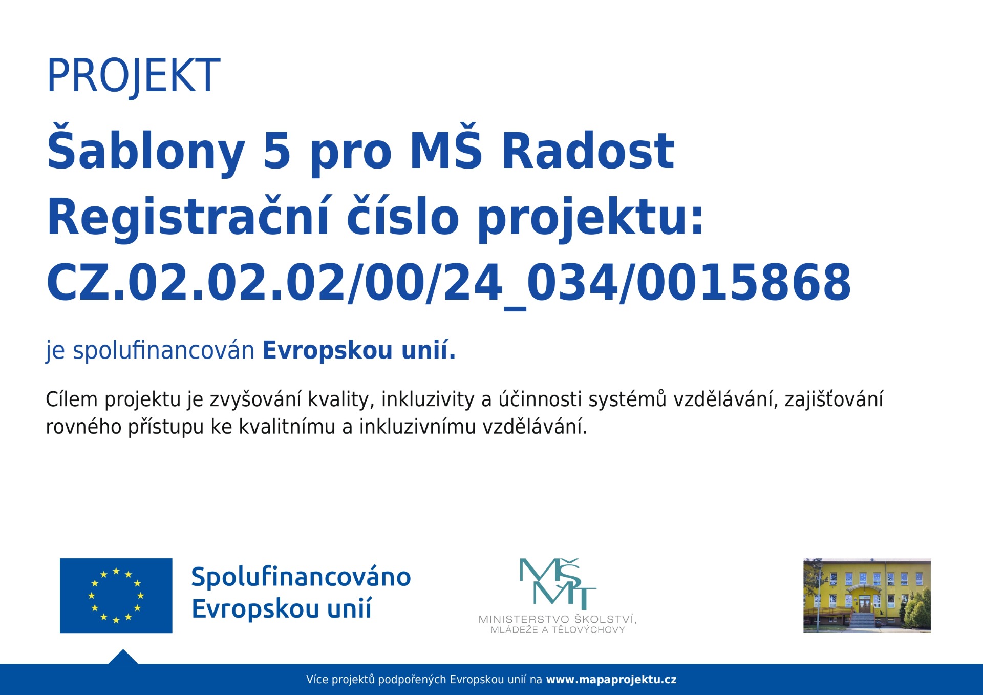 Mateřská škola Radost, Bystřice pod Hostýnem, Schwaigrovo náměstí 1365, okres Kroměříž, příspěvková organizace